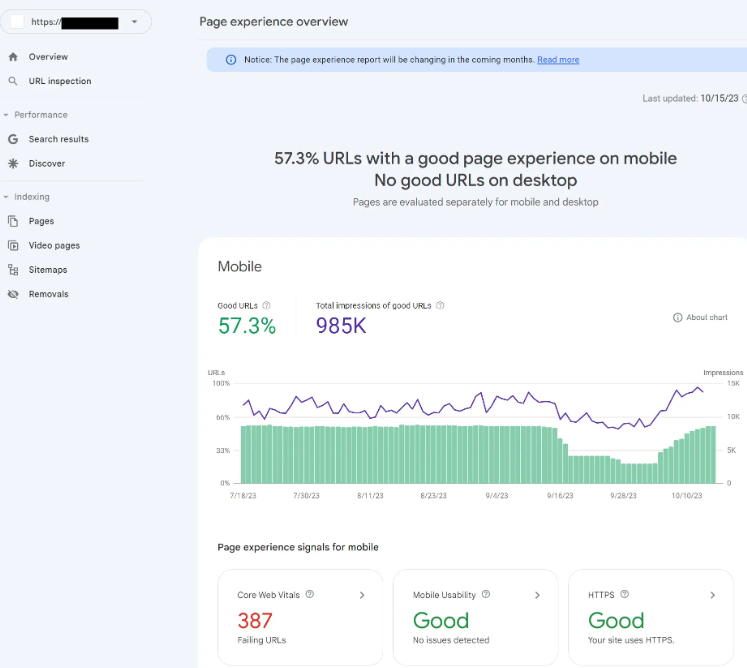 Search Console 的体验部分重点关注可能影响网站访问者用户体验的技术因素,例如核心网络生命周期、移动设备问题以及是否使用 HTTPS。